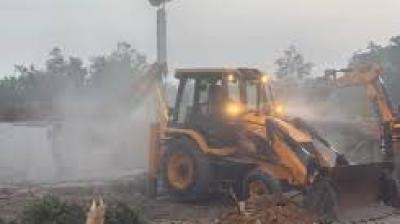 बुलडोजर और मजदूरों की टीम ने संभाली कमान, लगातार गिर रहे भवन