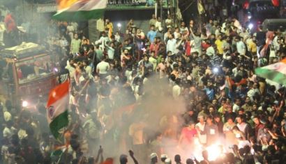 पूरी दिल्ली में ऐसा जश्न मनाया गया। मानो की दीपावली हो। लोगों ने आतिशबाजी की और एक दूसरे को मिठाइयां खिलाकर मुंह मीठा किया। यही नहीं, सड़कों पर निकलकर भारत माता की जय के नारे लगाए। होली के बाद भी एक बार भी लोग एक दूसरे को अबीर लगाते दिखे। सबसे विशेष बात तो यह रही कि इंडिया गेट पर जीत का लोगों ने जमकर जश्न मनाया। मैच की शुरुआत से ही दोनों टीमों के बीच एकतरफा मुकाबला देखने को मिला, जहां इंडिया ने अपनी विस्फोटक बल्लेबाजी कर न्यूजीलैंड को घुटनों पर का दिया था। दूसरी ओर, कसी हुई गेंदबाजी के चलते न्यूजीलैंड के बल्लेबाजों की कमर तोड़ पवेलियन का रास्ता दिखाया। भारतीय बल्लेबाजों के हर छक्के व चौके पर दर्शक व भारतीय समर्थकों रोमांच होकर उछलते दिख रहे थे। कोई गली व सड़कों पर बड़ी टीवी पर, तो कोई मेट्रो, बस या कार में पल-पल की अपडेट ले रहा था। बीच में जरूर तीन चार विकेट एक साथ गिरने के बाद माहौल थोड़ा