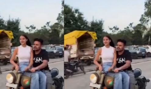 बाइक की टंकी पर युवती को बैठाकर चलाया वाहन, वीडियो वायरल