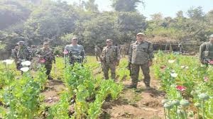 अंबिकापुर। छत्तीसगढ़ मध्य प्रदेश की सीमा में स्थित कुसमी जनपद पंचायत क्षेत्र की ग्राम पंचायत खजूरी के आश्रित गांव तुरीपानी में भी अफीम की खेती का बड़ा मामला सामने आया है. इससे 2 दिन पहले कुसमी जनपद क्षेत्र के ही त्रिपुरी गांव में भी साढ़े तीन एकड़ से अधिक क्षेत्र में अफीम की खेती का खुलासा हुआ था और प्रशासनिक टीम इसकी कार्रवाई में जुटी हुई थी. इसी बीच खजूरी पंचायत में भी अफीम की खेती का पता चला और उसके बाद देर शाम प्रशासन और पुलिस की टीम मौके पर पहुंची इसके बाद अधिकारियों ने पूरे इलाके को सील कर दिया और भारी संख्या में पुलिस बल तैनात किया गया आज इस पूरे मामले में कार्रवाई की जाएगी हालांकि अभी तक पता नहीं चल सका है कि अफीम की खेती करने वाला माफिया कौन है. खजूरी पंचायत में अफीम की खेती के मामले में पुलिस के द्वारा दो लोगों को हिरासत में लिया गया है. उनसे खेती के संबंध में पूछताछ की जा रही है, बताया जा रहा है कि दोनों व्यक्ति जमीन मालिक हैं.