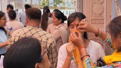 परीक्षा का पहला दिन: परीक्षार्थियों को टीका लगाकर दी गई शुभकामनाएं