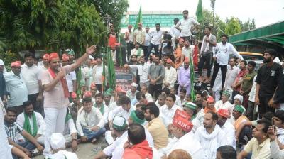 बड़ी संख्या में किसान थाने के बाहर धरने पर बैठे