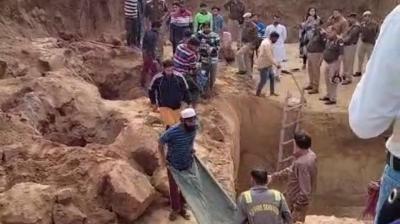 दीवार ढहने से बड़ा हादसा, 60 फीट गहरे बेसमेंट में दबे मजदूर